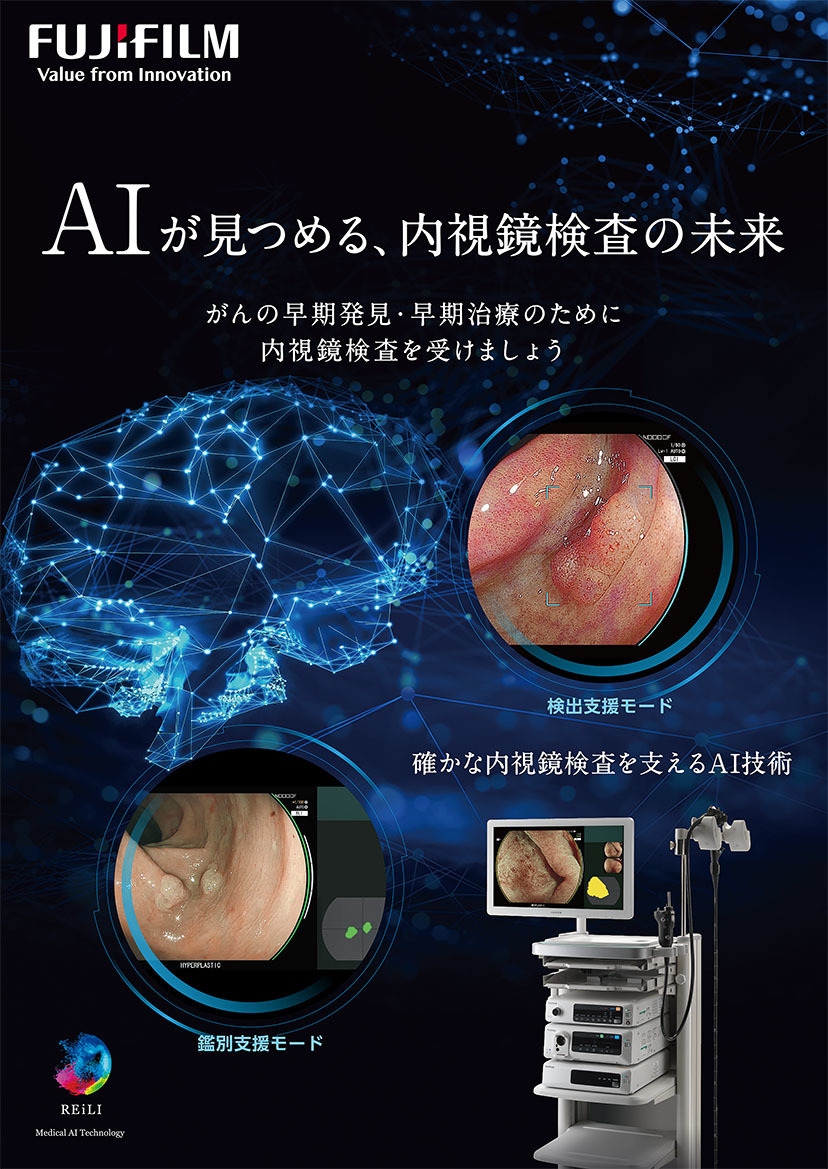 当プラザの胃部内視鏡検査機器は、富士フィルムのAI搭載機器を採用しております。